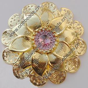 Iron Cabochons With Crystal Beads. Fashion jewelry findings. Lead-free. Flower 62mm Sold by Bag