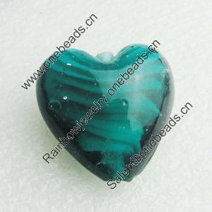 Hand-Made Lampwork Beads, heart 28x28mm,thickness 16mm Hole:About 2mm, Sold by PC