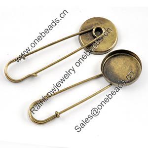 Iron Brooch Settings, Length:70mm, inner dia:16mm, Sold by Bag