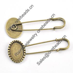 Iron Brooch Settings, Length:70mm, inner dia:16mm, Sold by Bag