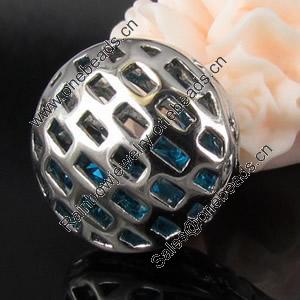 Copper Hollow Beads with Crystal, Fashion Jewelry Findings, Lead-free, Round 18x18mm, Sold by PC