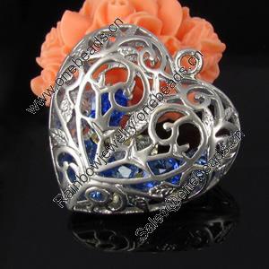 Copper Hollow Pendant with Crystal, Fashion Jewelry Findings, Lead-free, Heart 24x24x9mm, Sold by PC