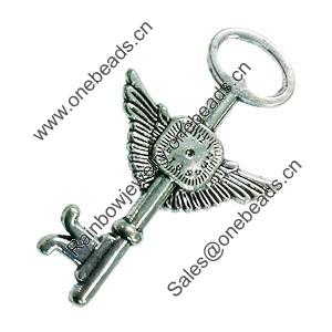 Pendant. Fashion Zinc Alloy Jewelry Findings. Lead-free. Key 15x7mm. Sold by Bag