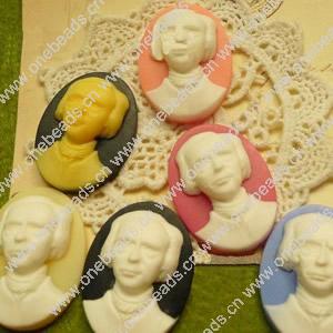 Cameos Resin Beads, No-Hole Jewelry findings, 25x18mm, Sold by Bag