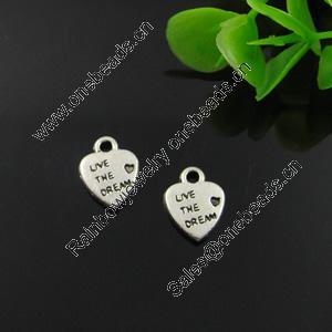 Pendant, Zinc Alloy Jewelry Findings, Lead-free, Heart 24x22mm, Sold by Bag