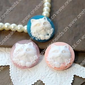 Cameos Resin Beads, No-Hole Jewelry findings, Flat Round 22mm, Sold by Bag
