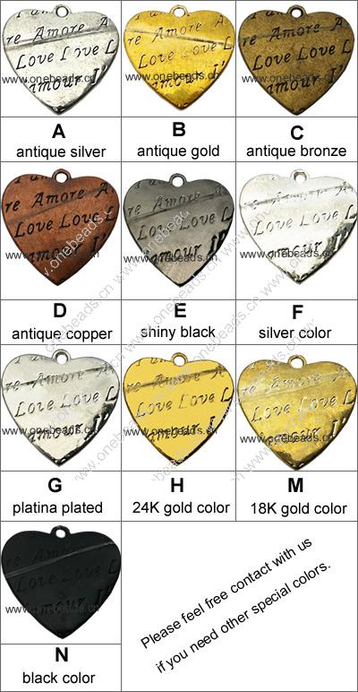 Pendant. Fashion Zinc Alloy jewelry findings. Heart 15x17mm. Sold by Bag