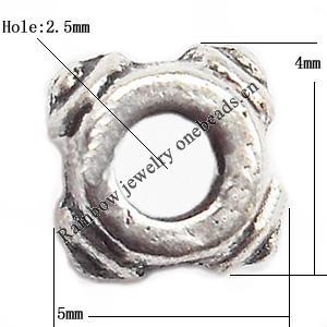 Spacer Zinc Alloy Jewelry Findings, Lead-free 5mm, Sold by Bag