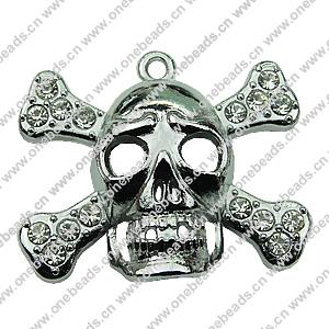 Zinc Alloy Charm/Pendant with Crystal, Nickel-free & Lead-free, A Grade 23x10mm Hole:2mm, Sold by PC