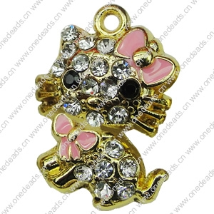 Zinc Alloy Charm/Pendant with Crystal, Cat, 25x28mm, Sold by PC