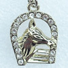 Zinc Alloy Charm/Pendant with Crystal, Lead-free, 43x19mm, Sold by PC