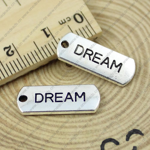 Pendant/Charm, Zinc Alloy Jewelry Findings, Lead-free, Letters 17x7mm,Sold by Bag