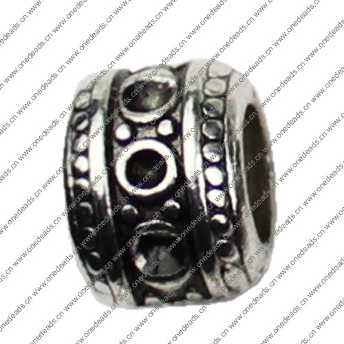 European Style Beads Zinc Alloy Jewelry Findings, Column 9x8mm Hole:5mm, Sold by Bag