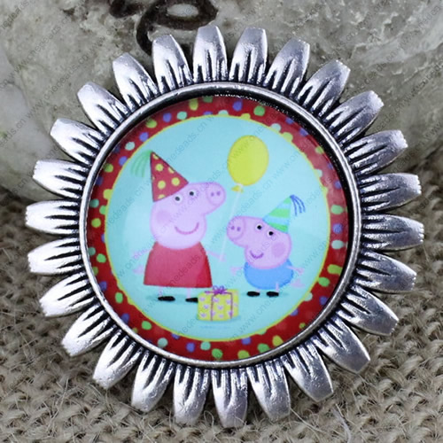 2015 Fashion Brooch Antique Silver Vintage The Glass Cartoon Girl Cabochons Settings Brooch Pins 35mm Sold by PC