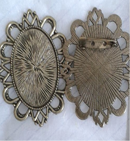 Zinc Alloy Brooch Cabochon Settings.Fashion Jewelry Findings.Inner dia:30x40mm. Sold by PC