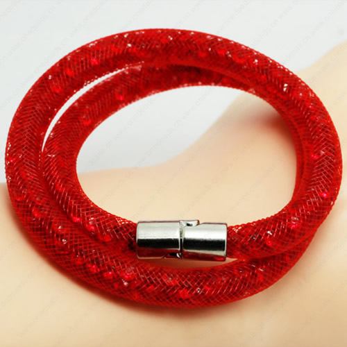 2016 Mesh Tube Bracelet Double Wrap Plastic Net Cord Bracelet with Glass Crystal Beads and Brass Rhinestone Magnetic Length 39-41cm Sold by Strand
