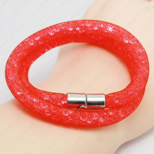 2016 New Various colors for choice Double wrap tube mesh bracelet with Glass Crystal Beads and Magnetic Clasps Length 39-41cm Sold by Strand