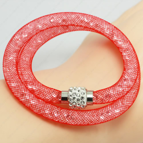 2016 Mesh Tube Bracelet Double Wrap Plastic Net Cord Bracelet with Glass Crystal Beads and Brass Rhinestone Magnetic Length 39-41cm Sold by Strand