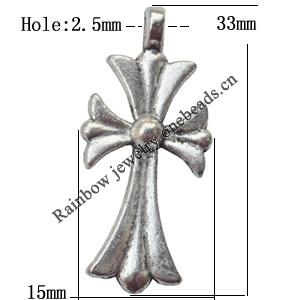 Pendant. Fashion Zinc Alloy jewelry findings. Lead-free. Cross 45x43mm. Sold by Bag