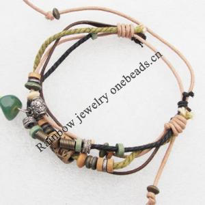 Cowhide with Ox Bone Bracelet,wideth:12mm, Length:17cm, Sold by Dozen