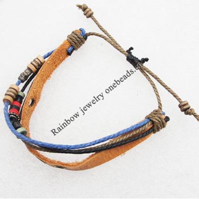 7.1 Inch Cowhide (Cowskin) with waxed cotton & Wood Beads Bracelet Mix color Mix style Sold by Bag
