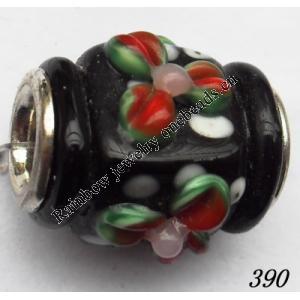 Handmade European Style Lampwork Beads With Platinum Color Copper Core, 10x15mm Hole:5mm, Sold by PC