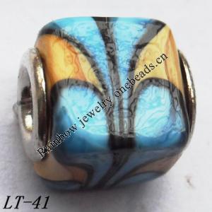 Handmade European style Lampwork Beads With Platinum Color Copper Core, 10x14mm Hole:5mm, Sold by PC