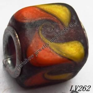 Handmade European Style Lampwork Beads With Platinum Color Copper Core, 10x15mm Hole:5mm, Sold by PC