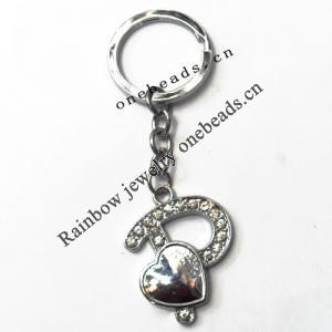 Zinc Alloy with Crystal keyring, Letters 4.5inch approx 33mm ring, Sold by Bag