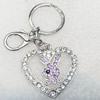 Zinc Alloy keyring with Crystal, Letters with Heart 4.5inch approx 33mm ring, Sold by Bag
