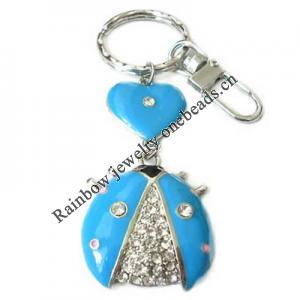 Zinc Alloy with Crystal keyring, Figure 4.5inch approx 33mm ring, Sold by Bag