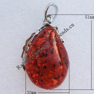 Imitate Amber Pendant With Metal Alloy Set, 52x28x12.5mm, Sold by Bag