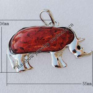 Imitate Amber Pendant With Metal Alloy Set, Animal 65x56x10mm, Sold by Bag