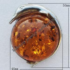 Imitate Amber Pendant With Metal Alloy Set, 56x32x15mm Hole:10.5x5mm, Sold by Bag