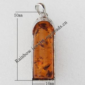 Imitate Amber Pendant With Metal Alloy Set, 50x25x15mm, Sold by Bag