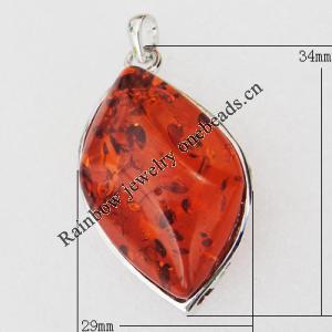 Imitate Amber Pendant With Metal Alloy Set, 43x21x12mm, Sold by Bag