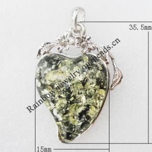 Imitate Amber Pendant With Metal Alloy Set, 43x25x11mm, Sold by Bag