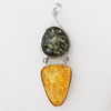 Imitate Amber Pendant With Metal Alloy Set, 63x34.5x16mm Hole:9x5mm, Sold by Bag