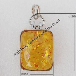 Imitate Amber Pendant With Metal Alloy Set, 47x30.5x14mm, Sold by Bag