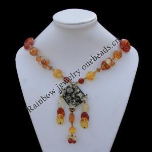Imitate Amber Necklace, 59x32.5x20mm Length:21.3inch Sold by Bag