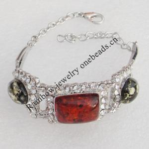 Bracelet, Imitate Amber Beads and Crystal Beads on a Zinc Alloy frame, width:40mm, Outer diameter:80mm, Sold by PC