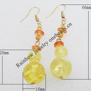 Imitate Amber Earring, width:13mm, Length:58mm, Sold by Dozen