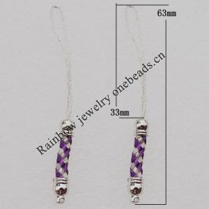 63mm Mobile Telephone or Key Chain Jewelry Cord with Iron cap, Sold by Bag