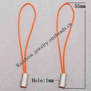 55mm Mobile Telephone or Key Chain Jewelry Cord with Copper cap, Hole:1mm Sold by Bag