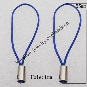 55mm Mobile Telephone or Key Chain Jewelry Cord with Copper cap, Hole:1mm Sold by Bag
