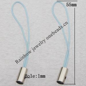 55mm Mobile Telephone or Key Chain Jewelry Cord with Iron cap, Hole:1mm Sold by Bag