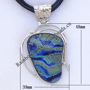 17-inch Lampwork Necklace, Wax Cord & Lampwork Pendant With Metal Alloy Set 43x35x10mm Length:17inch Sold by Bag