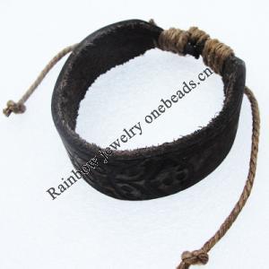 7.1 Inch Cowhide (Cowskin) with waxed cotton Bracelet Mix color Mix style Sold by Group