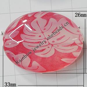 Watermark Acrylic Beads, Flat Oval 33x26mm Hole:2mm, Sold by Bag