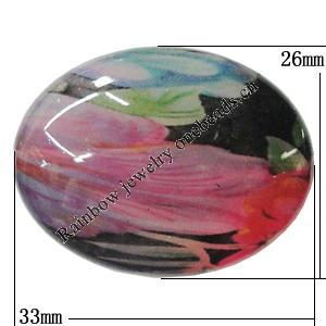 Watermark Acrylic Beads, Flat Oval 33x26mm Hole:2mm, Sold by Bag